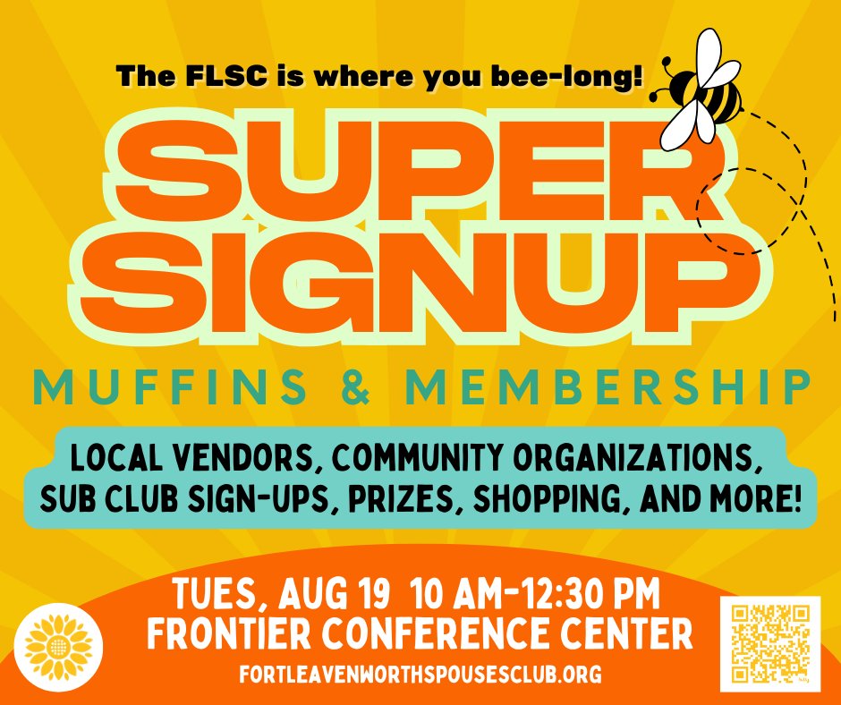 Scan the QR code to join, or sign up in person on the 19th. You can also visit our website: https://fortleavenworthspousesclub.org/