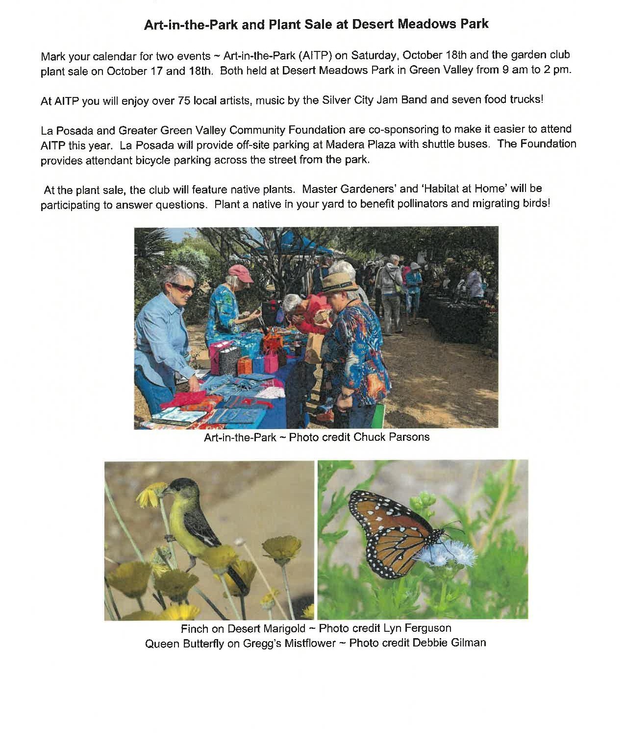 Art in the Park and Plant Sale at Desert Meadows Park with the Green Valley Gardeners