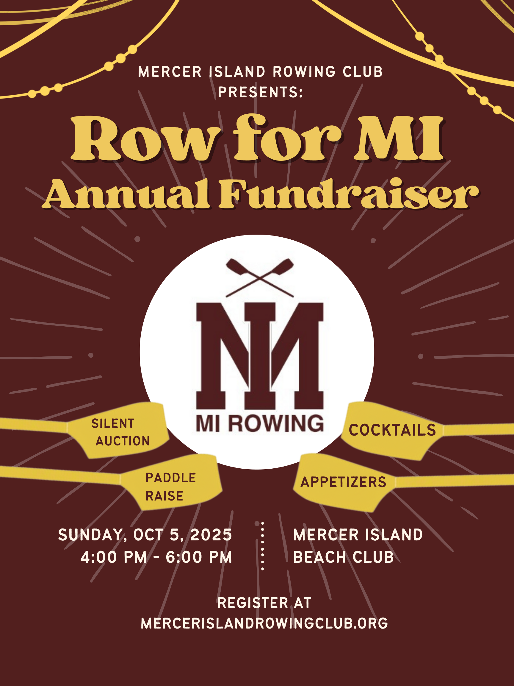 Join Mercer Island Rowing Club for their Row for MI Annual Fundraiser on Sunday, October 5th at the Mercer Island Beach Club from 4:00pm-6:00pm.