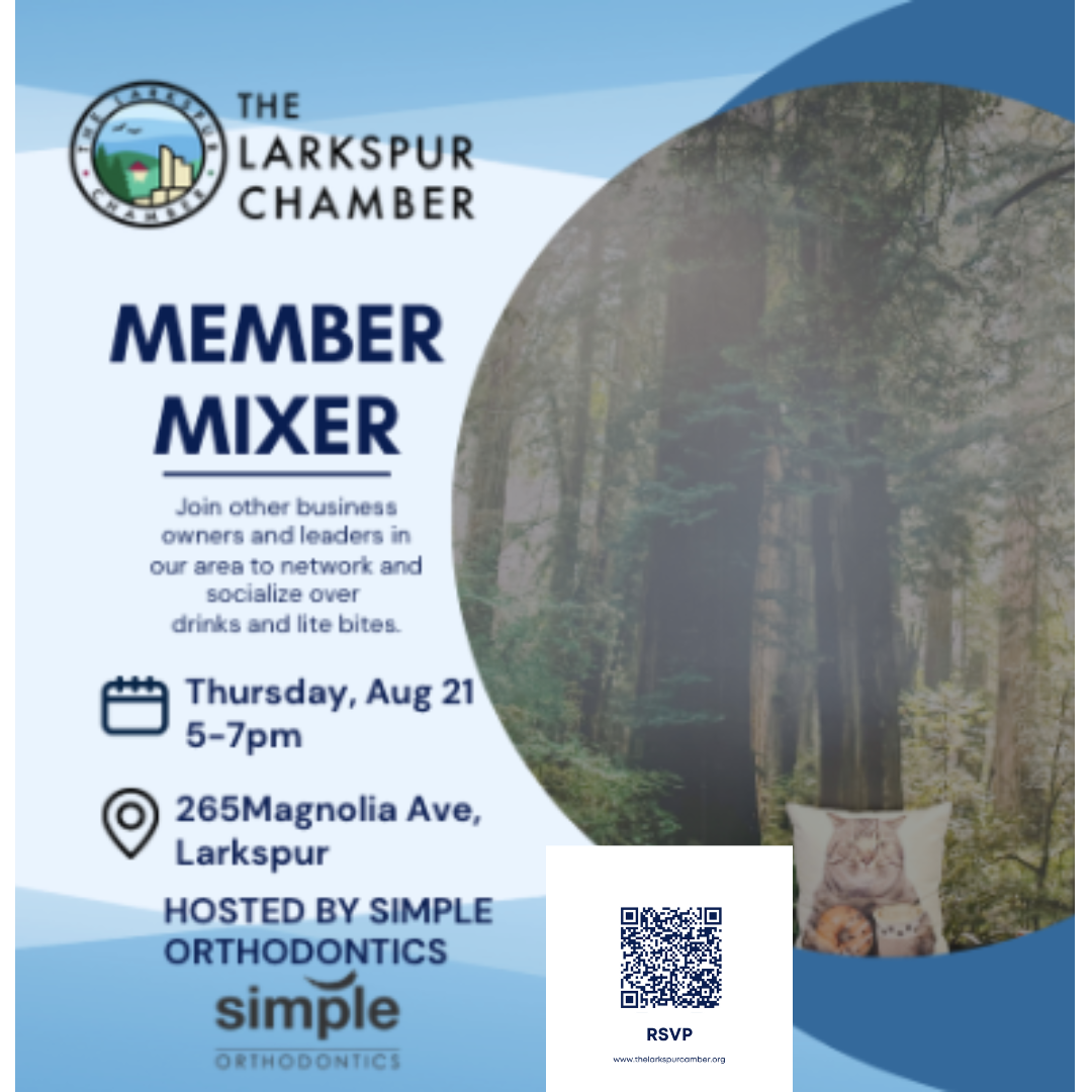 HAPPENING THIS THURSDAY: August 21st 5-7pm Larkspur Chamber Member Mixer!