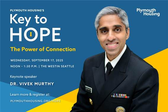 Plymouth Housing has our annual luncheon Key to Hope: The Power of Connection coming up on Wednesday, September 17 from noon to 1:30 p.m. at The Westin Seattle.