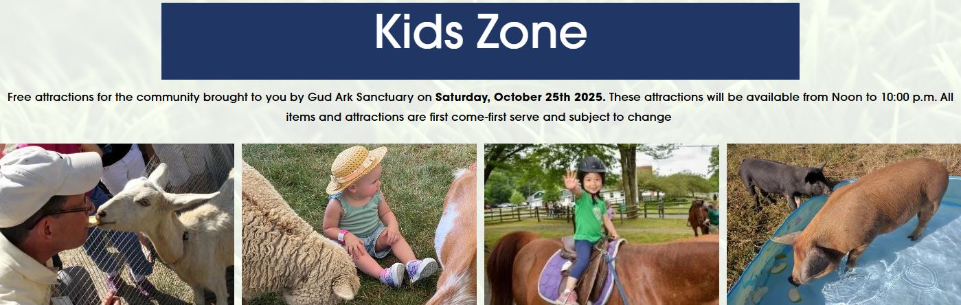 Free attractions for the community brought to you by Gud Ark Sanctuary on Saturday, October 25th 2025. These attractions will be available from Noon to 10:00 p.m. All items and attractions are first come-first serve and subject to change.