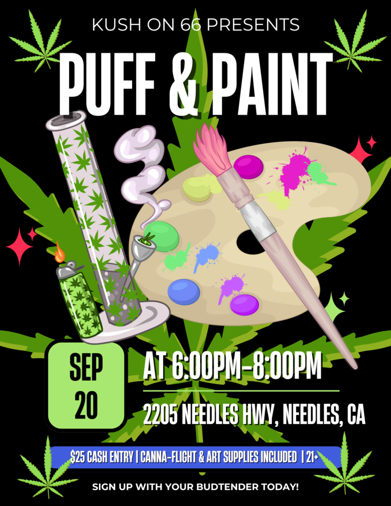 Let the inspiration flow as you puff, paint, and chill with the Kush fam. Don’t miss the sesh—art meets elevation only at Kush on 66!