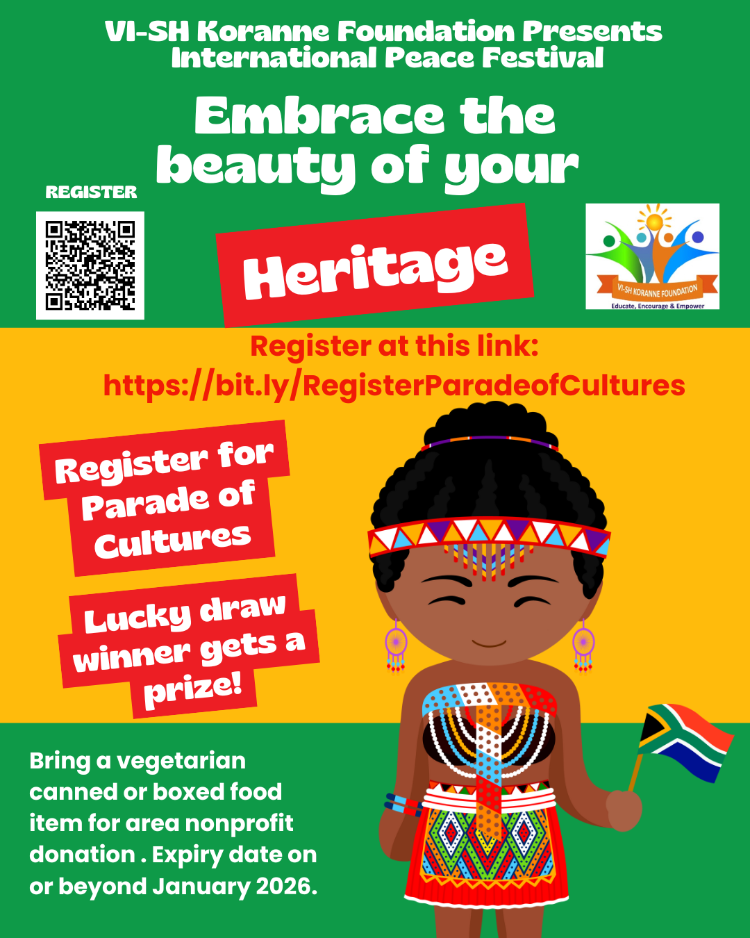 Please register for Parade of Cultures ASAP. We want to give an opportunity to all cultures to be seen and appreciated. Lucky draw winner gets a prize. Register at this link before the deadline- https://bit.ly/RegisterParadeofCultures