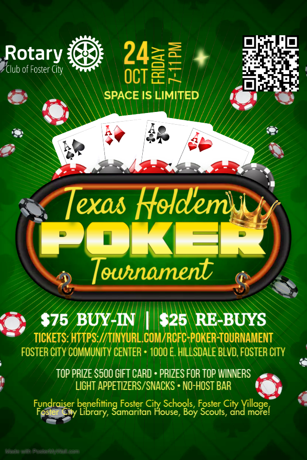 Ready to raise the stakes and raise funds for a great cause? Join us for a high-energy evening of Texas Hold’em, tasty bites, and community spirit — all while supporting local nonprofits and programs that make Foster City thrive.