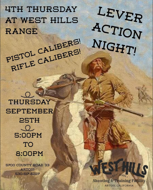 Lever Action night at West Hills Range! Includes rifle calibers and pistol calibers!