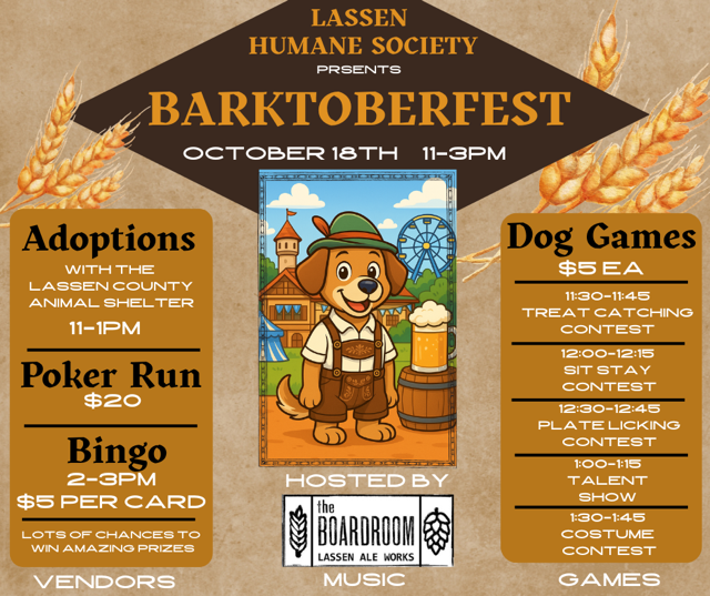 Adoptions with Lassen County Animal Shelter (11 AM – 1 PM)