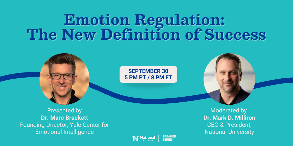 National University Speaker Series presents Emotion Regulation: The New Definition of Success In today’s fast-paced, high-pressure world, one skill separates those who thrive from those who struggle or burn out: emotion regulation. This session explores how mastering your emotions can transform performance, strengthen relationships, support mental health, and enhance overall well-being. Join us to gain science-based insights into emotional intelligence, practical strategies for cultivating resilience, and tools for leading with clarity and compassion in education, organizations, and everyday life.