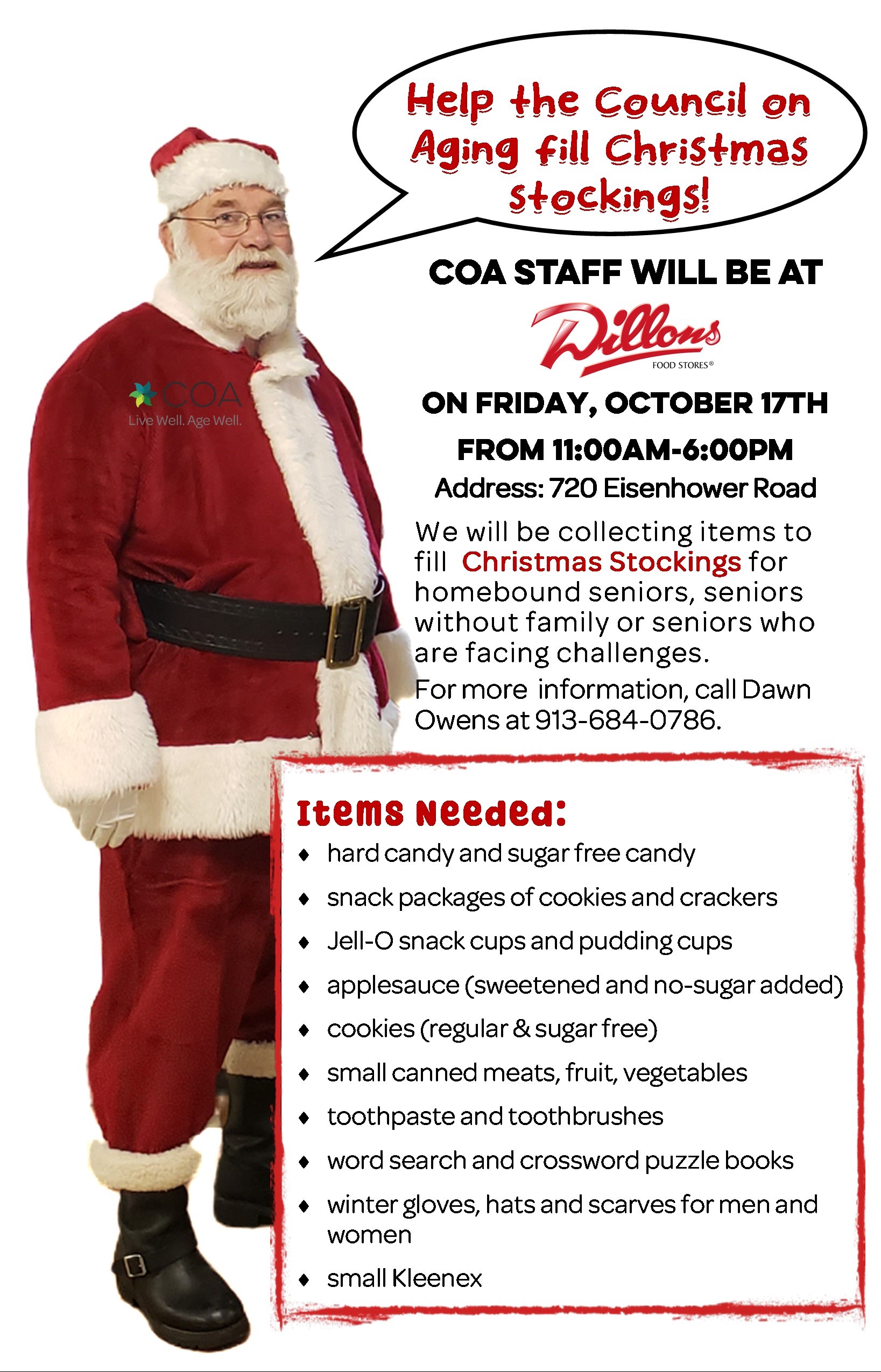 Please join the COA at our annual Dillons Christmas Stocking Stuffer collection event!