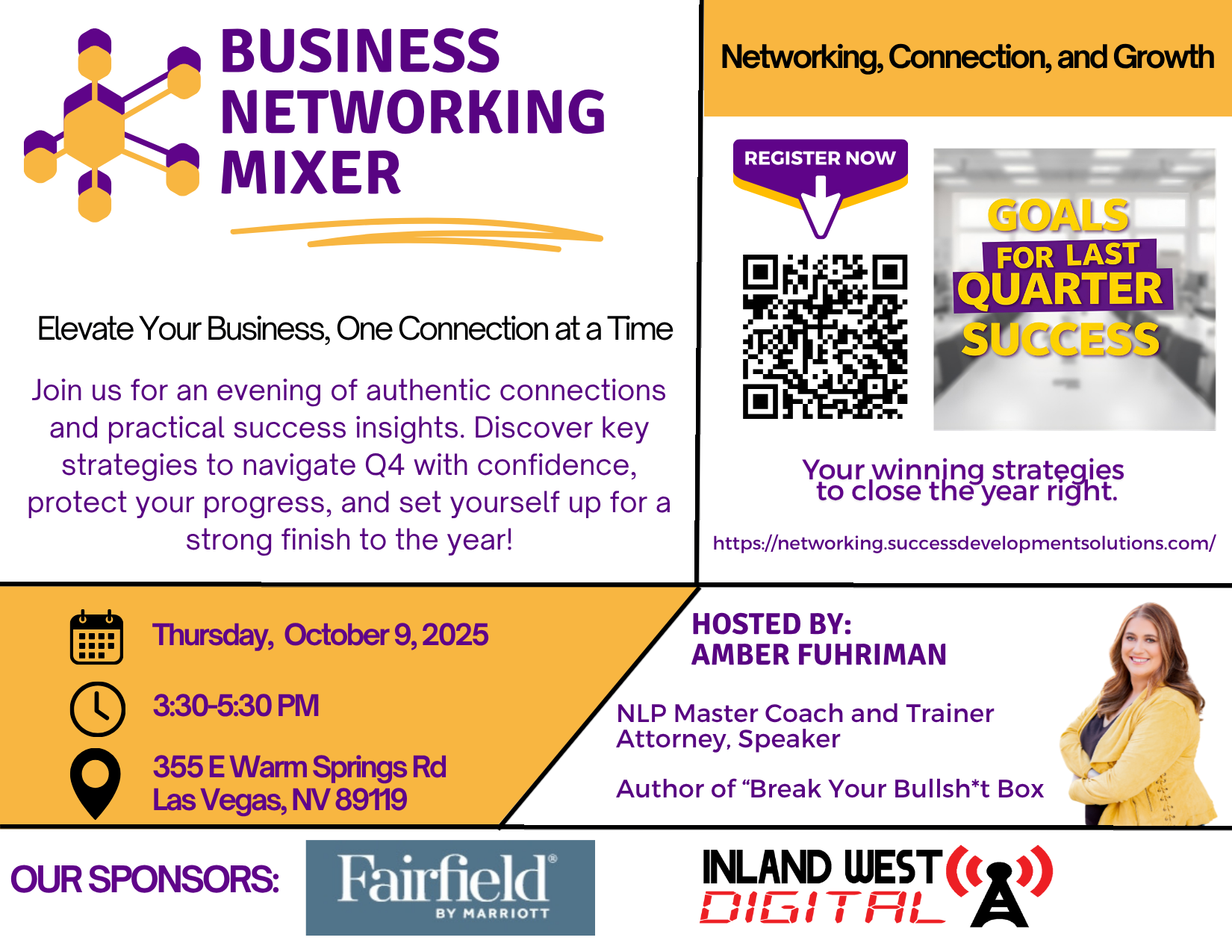 Join Success Development Solutions and Amber Fuhriman at this Business Networking Mixer. It's a great opportunity to meet new business owners, share what you do and learn about local businesses in the area.