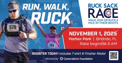 Ruck Sack Warrior 5K – complete the course with a 35 lb rucksack, just as military service members do in training.