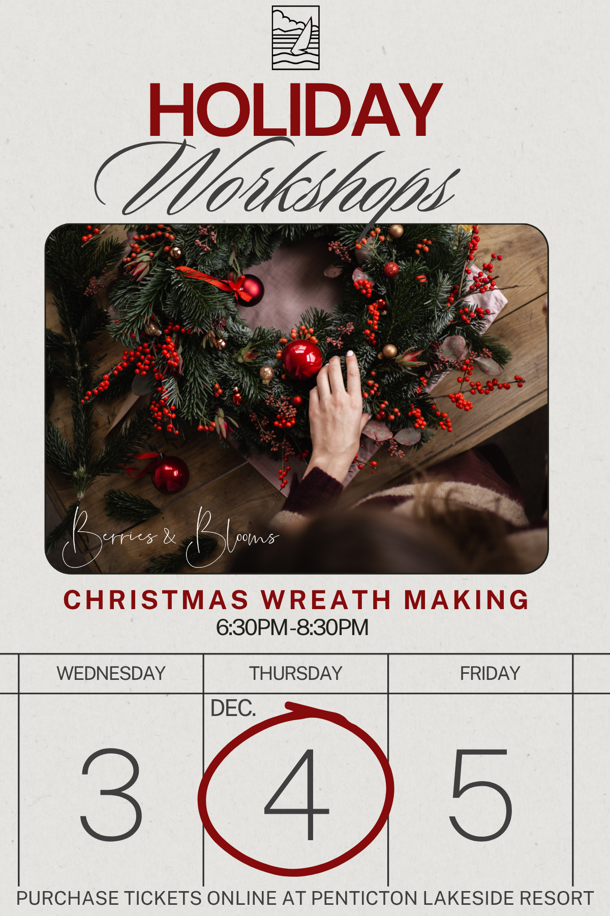 What better way to get into the holiday spirt than an evening out with friends, creating custom, handcrafted holiday wreaths over a glass of wine – next to a cozy fireplace!