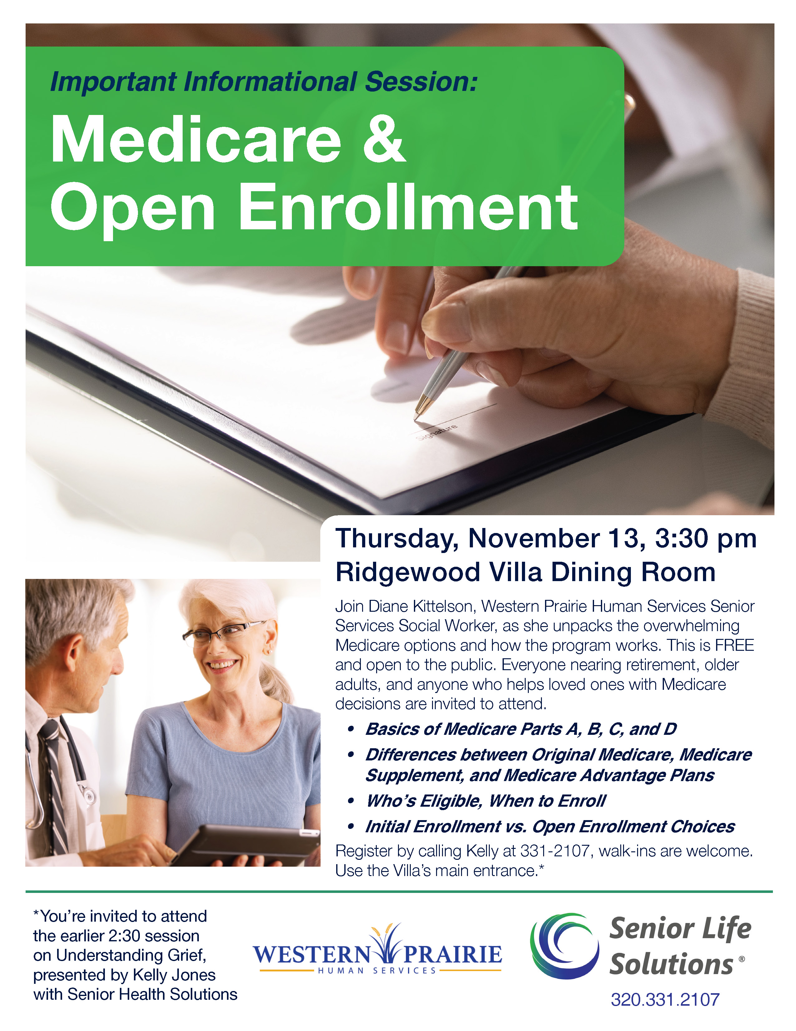 If you’re feeling overwhelmed by all the Medicare options and how the programs work, this session is for you! Presented by Diane Kittelson, Western Prairie Human Services. This free, educational event will help you understand your choices and feel confident making decisions about your Medicare coverage. You’re also welcome to attend the Healthy Aging Series session at 2:30 that afternoon—stay for one or both!