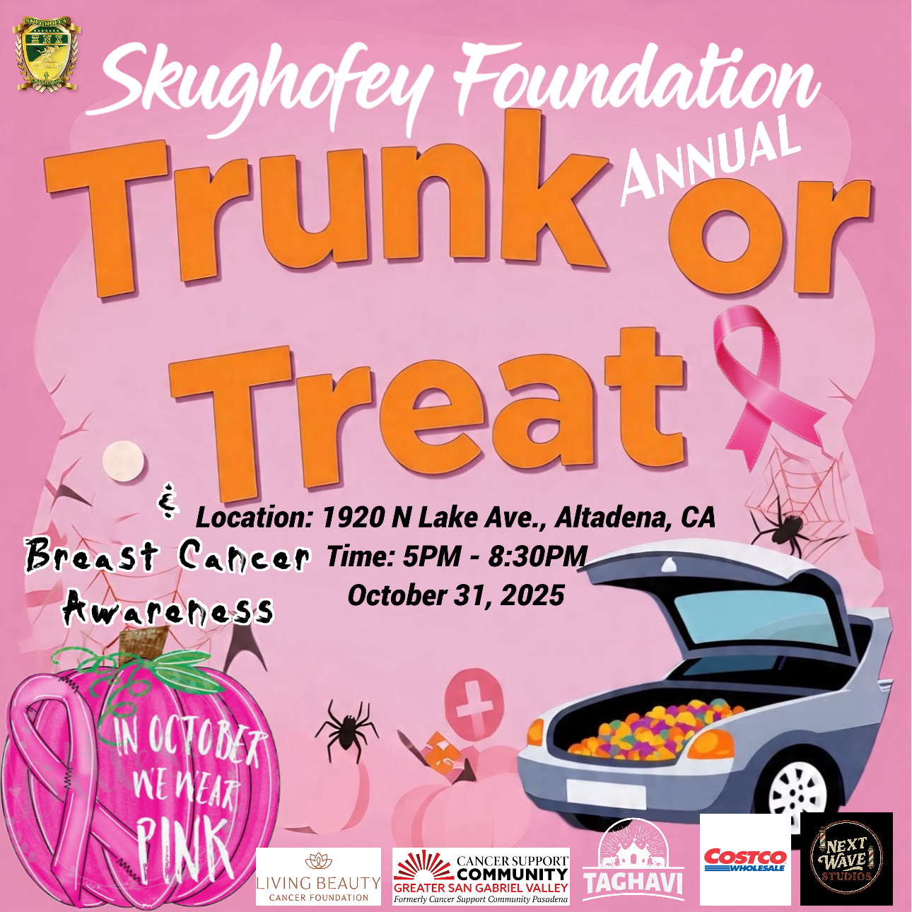 Altadena, CA – The Skughofey Foundation is excited to announce its upcoming Youth Trunk or Treat event, dedicated to raising breast cancer awareness. This family-friendly event promises to blend the festive spirit of Halloween with critical awareness initiatives surrounding breast cancer, all while fostering community support and engagement.