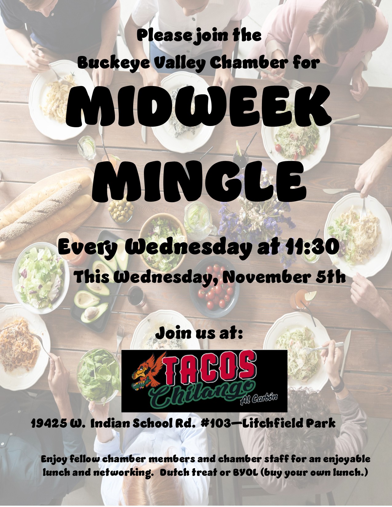 Mid Week Mingle will be at Tacos Chilango - 19425 W. Indian School Rd. #103, Litchfield Park