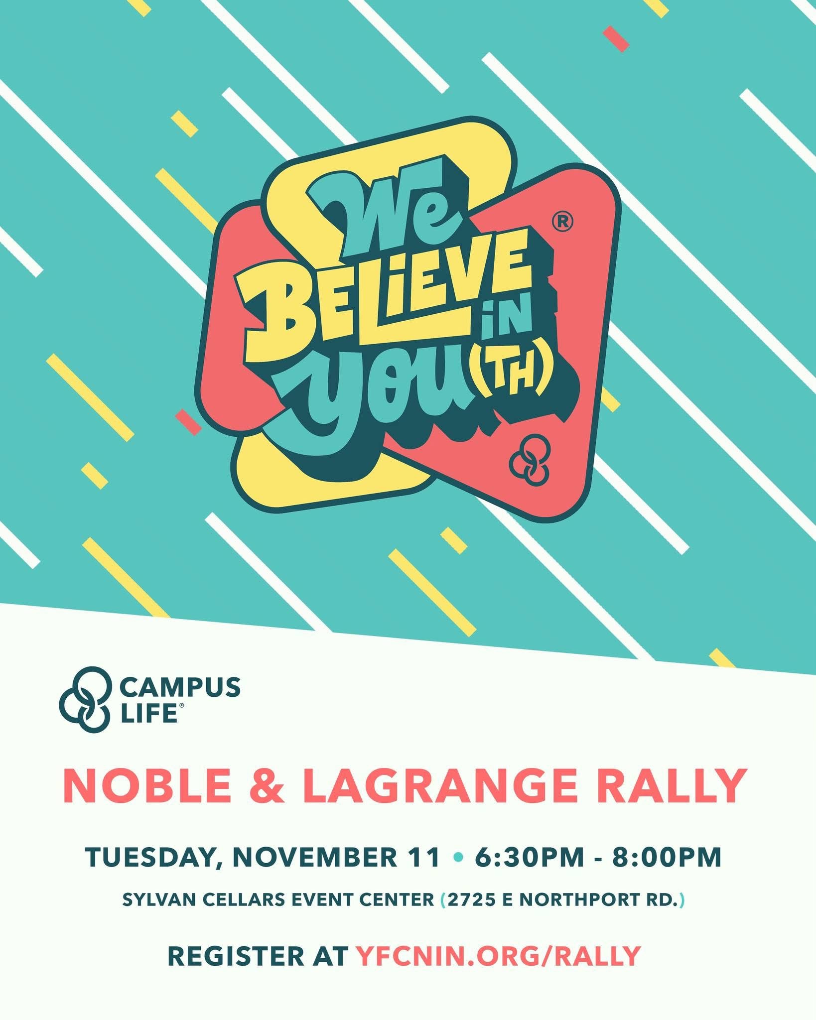 Join us for a night of celebrating what God is doing through Campus Life in Noble and LaGrange Counties and learn how you can partner with us through our We Believe in You(th) campaign!