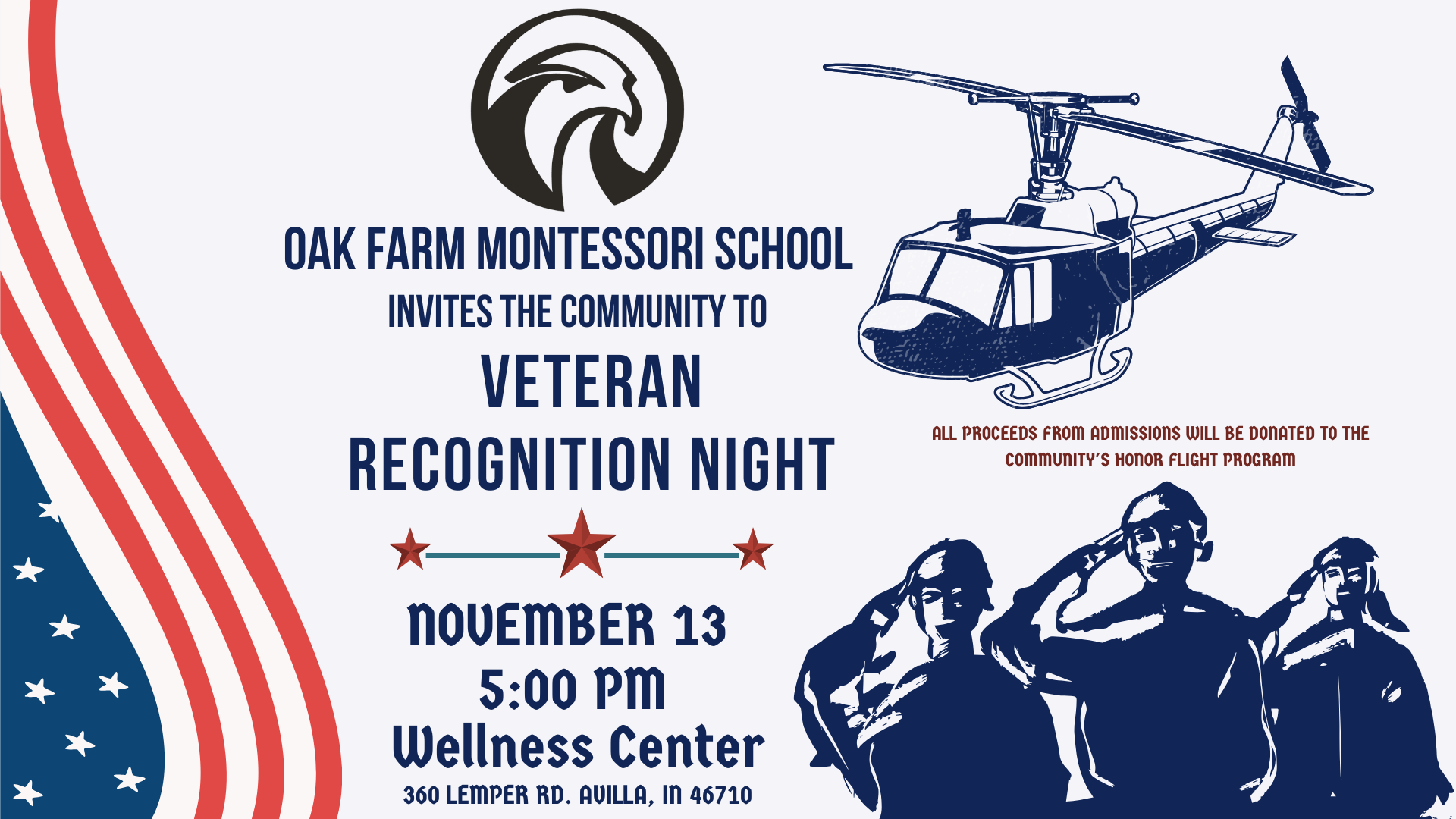 Oak Farm Montessori invites the community to a special moment of recognition on Wednesday, November 13, before the 5:30 PM basketball game, to honor local veterans for their service.