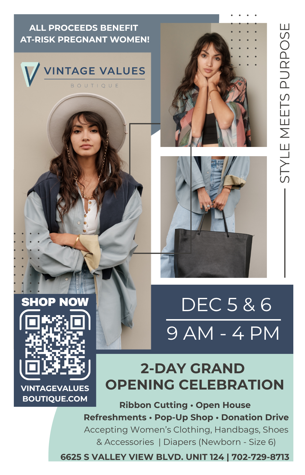 Be part of something beautiful where style meets purpose! On December 5 & 6 from 9 AM to 4 PM, we’re celebrating the official opening of Vintage Values Boutique—a one-of-a-kind shopping experience where every purchase supports at-risk pregnant women in our community.