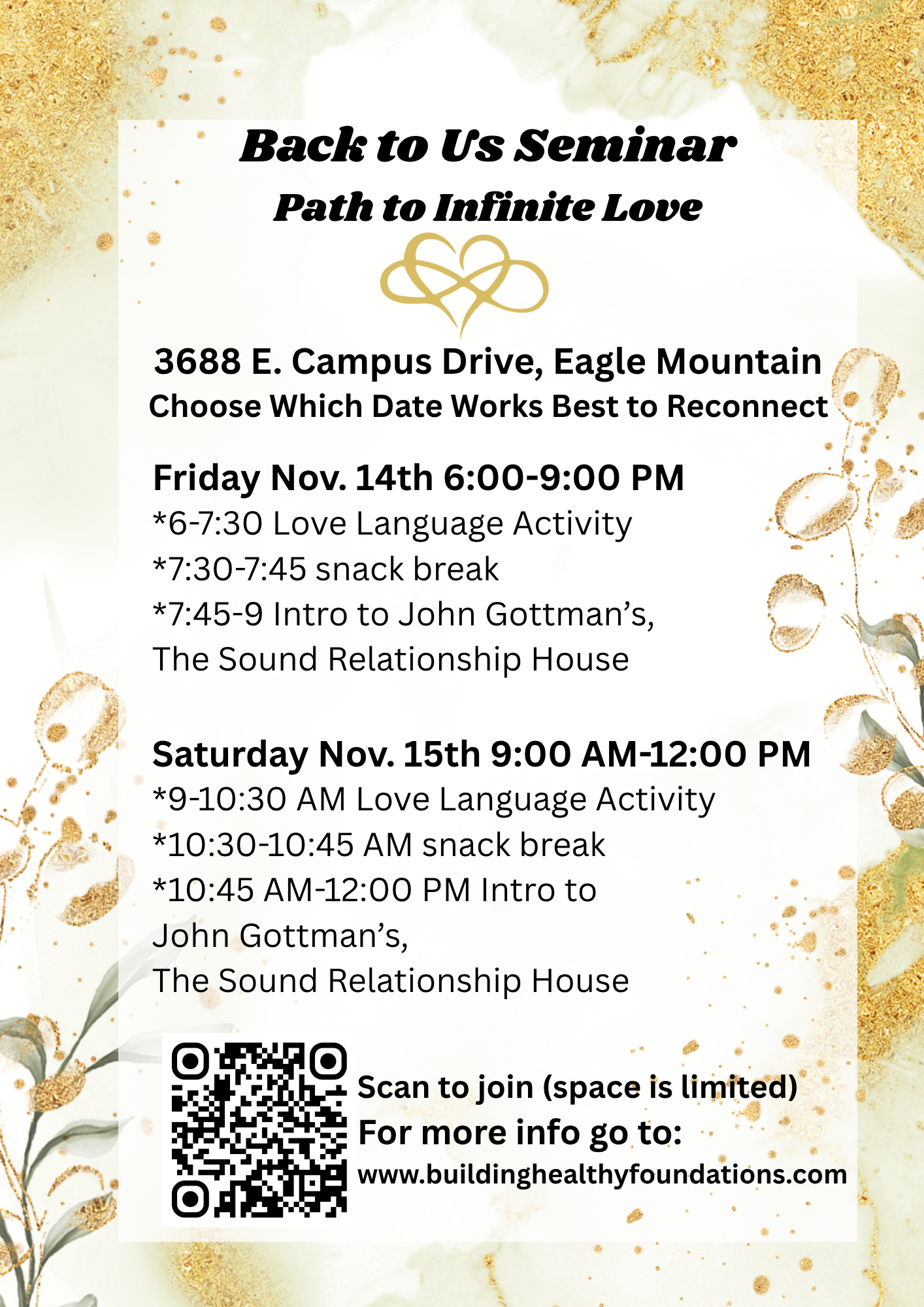 This seminar is not about fixing what's broken—it's about enriching what you already have, discovering new tools for connection, and creating a shared vision for your future. So whether you're here to rekindle, refresh, or reinforce your bond, you're in the right place.