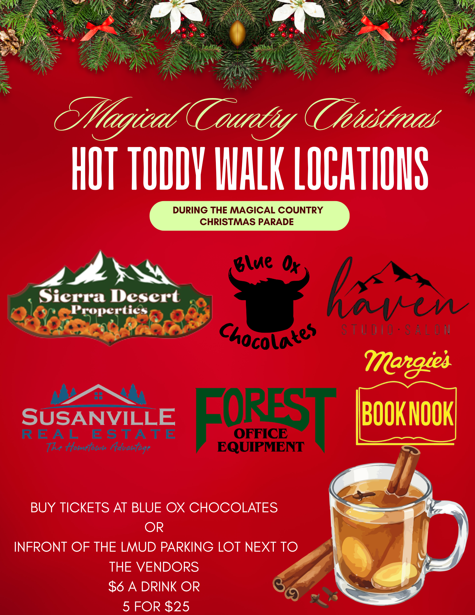 Warm up your evening during the Magical Country Christmas Parade with the Hot Toddy Walk, hosted by the Lassen County Chamber of Commerce! ββ¨