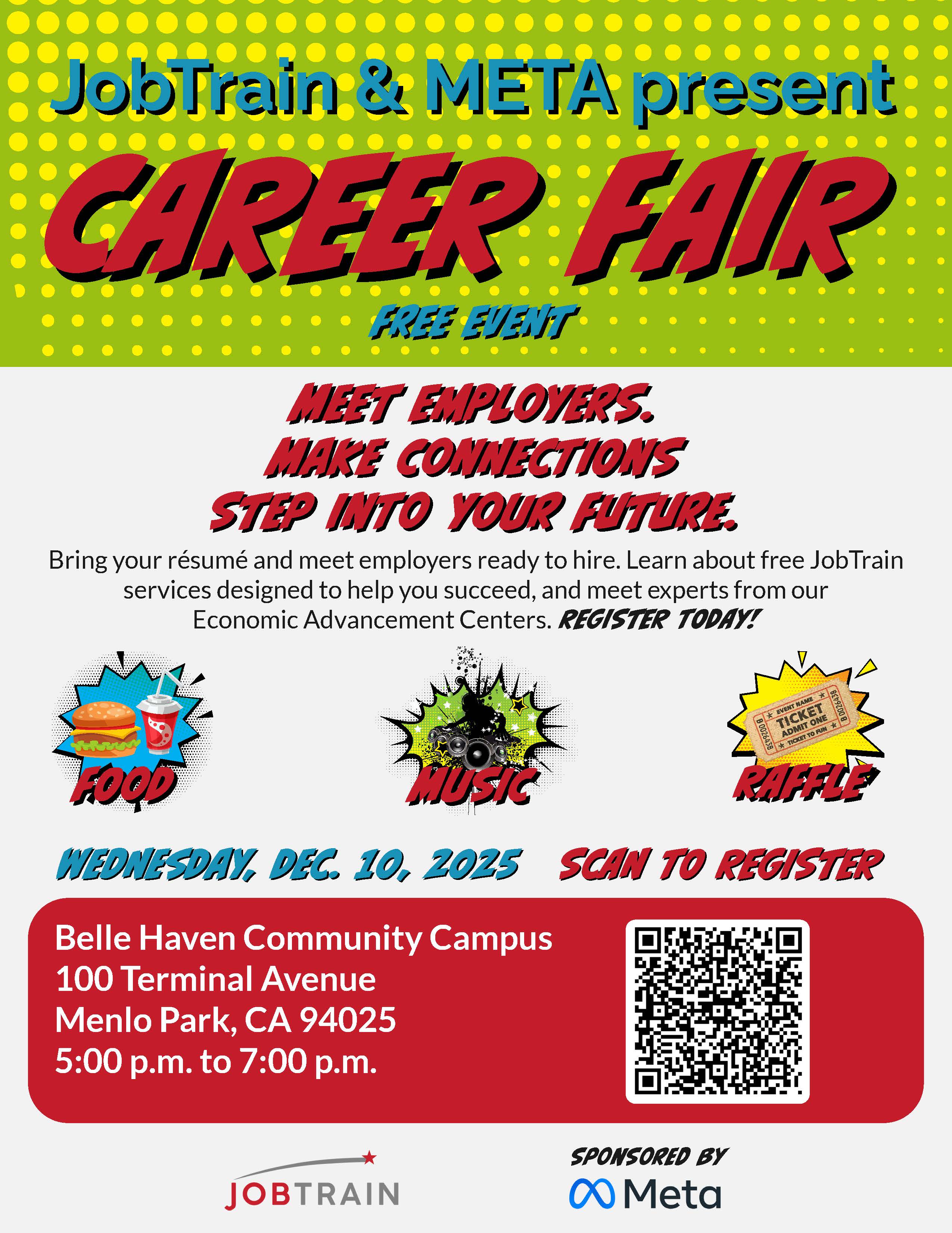 This free Career Fair will take place on December 10th from 5–7 p.m. at the Belle Haven Community Campus in Menlo Park. The event will feature employers, food, music, and a raffle. Bring your résumé and be ready to network with organizations actively hiring.
