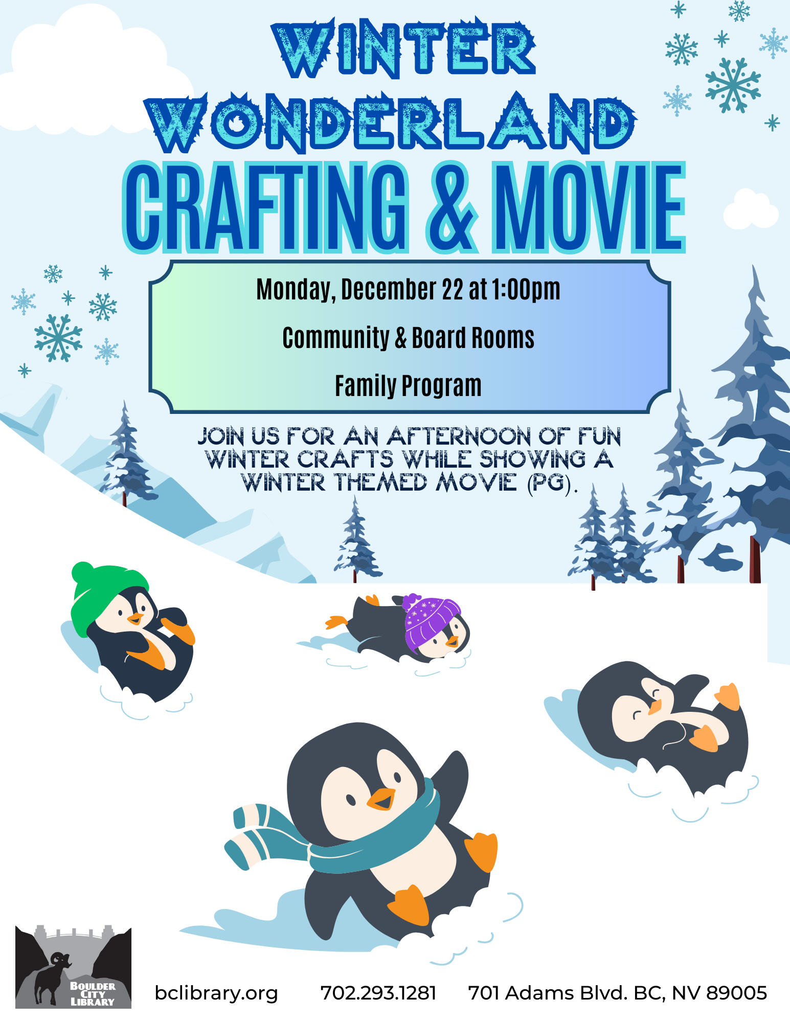 Join us to celebrate the winter holiday season by making various crafts and enjoying the movie.