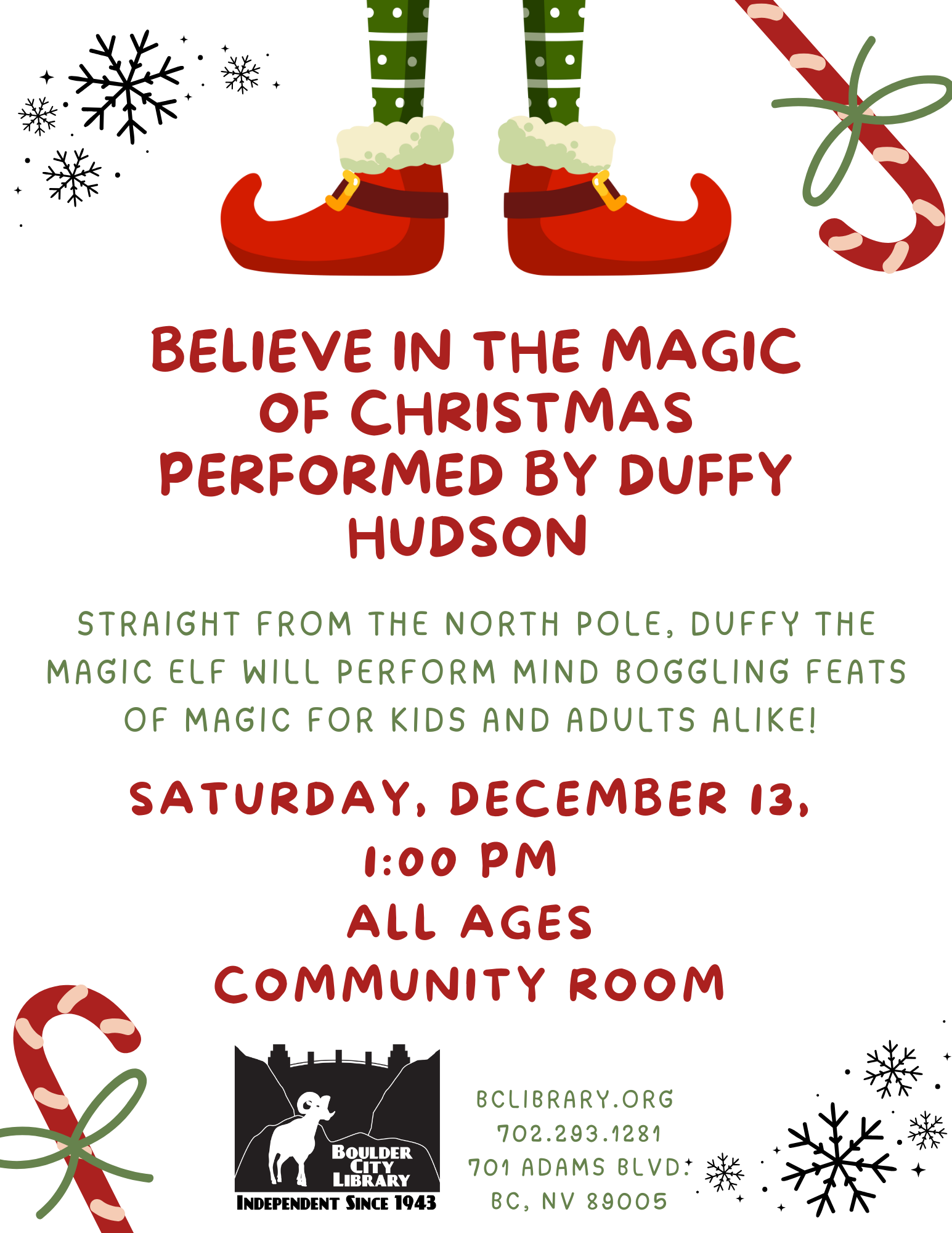 Straight from the NorthPole, Duffy the magic elf will perform mind boggling feats of magic for kids and adults alike !