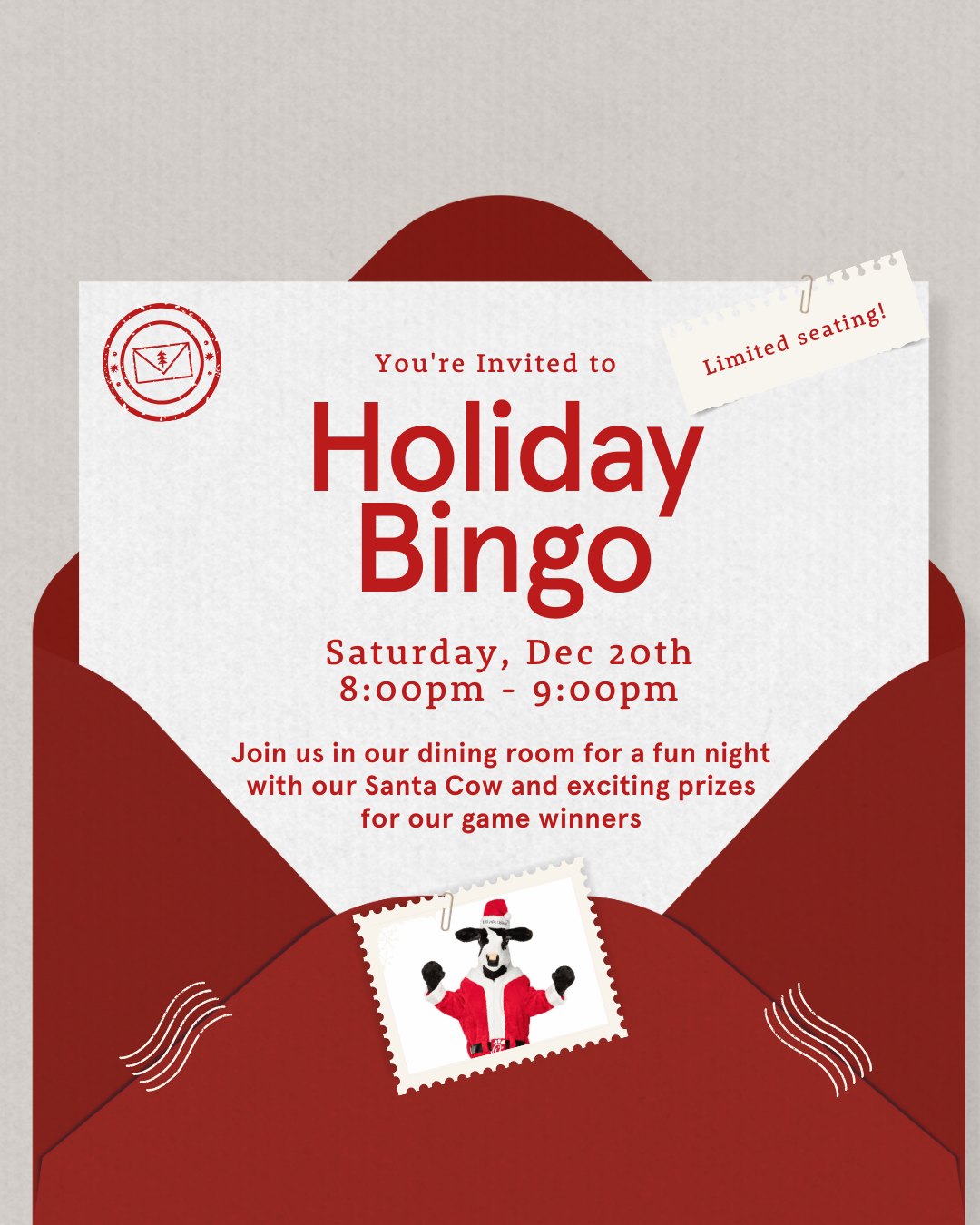 Join us in out dining room for a fun night with our