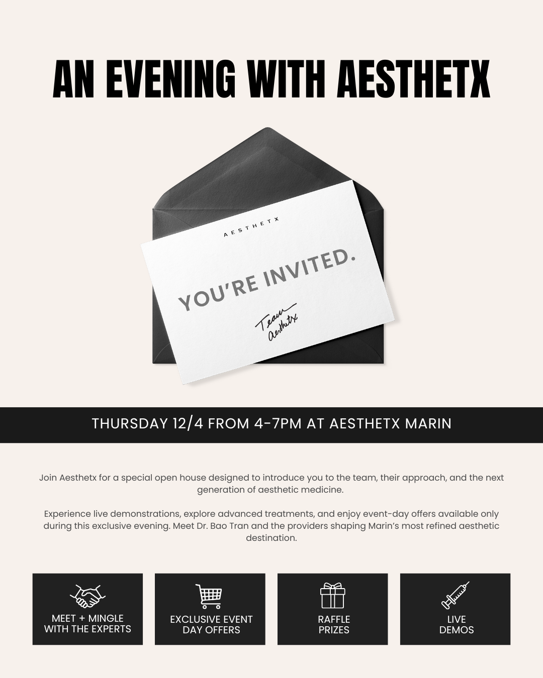 We’re thrilled to welcome you to Aesthetx Marin for our Patient Appreciation One-Year Anniversary Celebration 🎉
