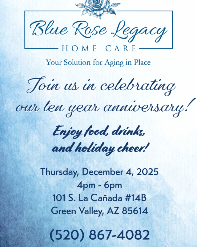 Blue Rose Legacy Home Care is celebrating their ten year anniversary and everyone is invited to join them for food, drinks, and holiday cheer!