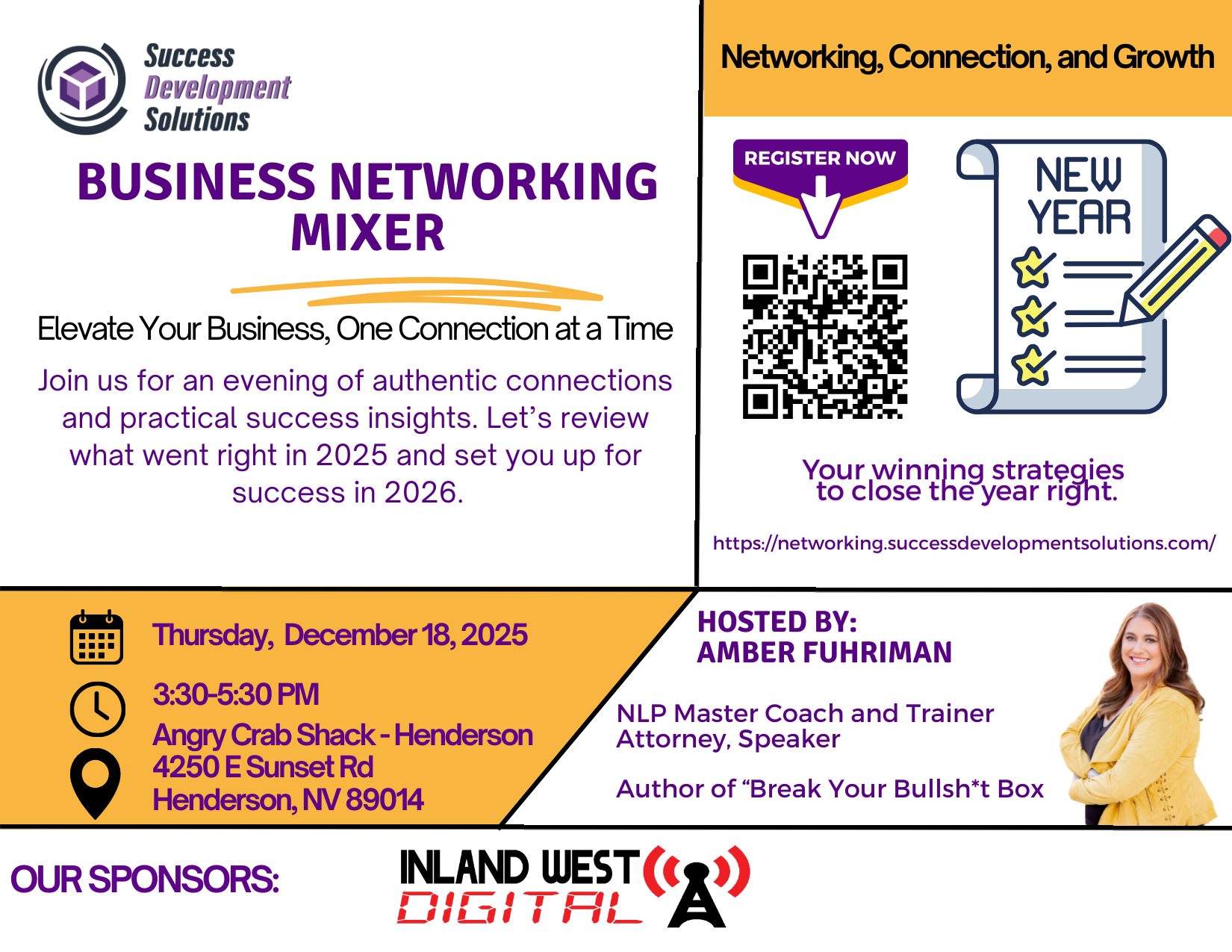 Join Success Development Solutions and Amber Fuhriman at this Business Networking Mixer. It's a great opportunity to meet new business owners, share what you do and learn about local businesses in the area.