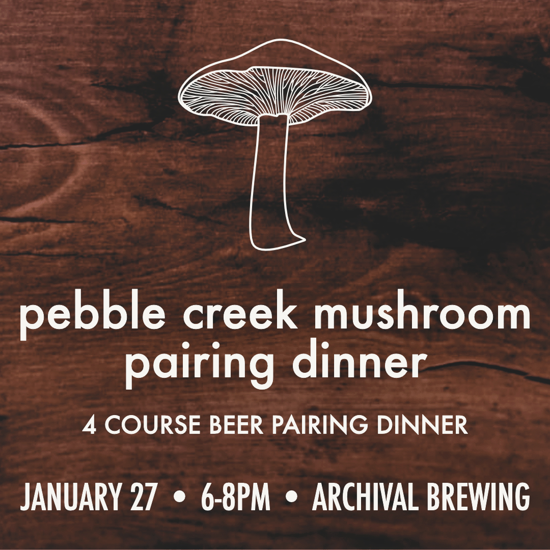 Join us for a mushroom + beer pairing dinner at Archival with Pebble Creek Produce!