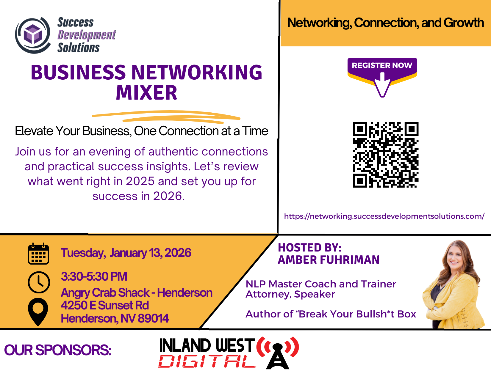 Join Success Development Solutions and Amber Fuhriman at this Business Networking Mixer. It's a great opportunity to meet new business owners, share what you do and learn about local businesses in the area.