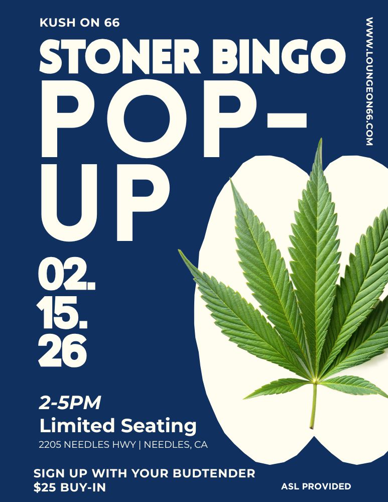 Join us for a special Stoner Bingo Pop-Up at Kush on 66 — where classic bingo meets elevated vibes. Grab your card, spark up, and play for exclusive cannabis prizes, lounge perks, and merch giveaways in a relaxed, inclusive atmosphere.