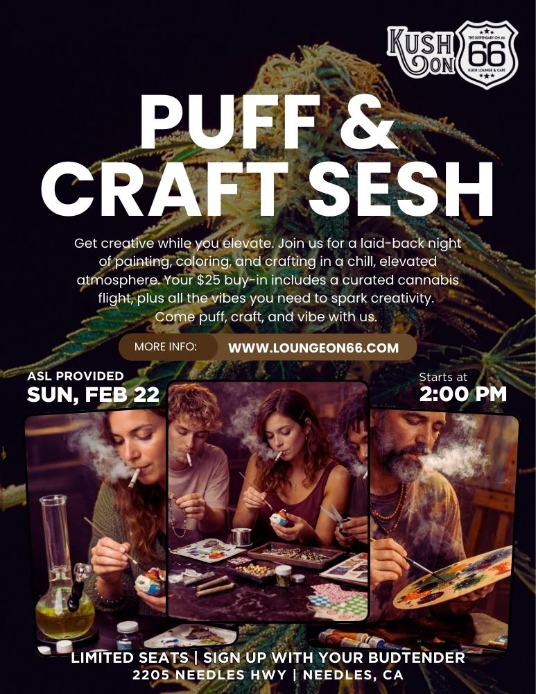 Get creative while you elevate at our Puff & Craft Sesh, a laid-back afternoon of painting, coloring, and crafting in a chill, cannabis-friendly lounge environment. Whether you’re an experienced artist or just here for the vibes, this event is all about relaxing, creating, and connecting.