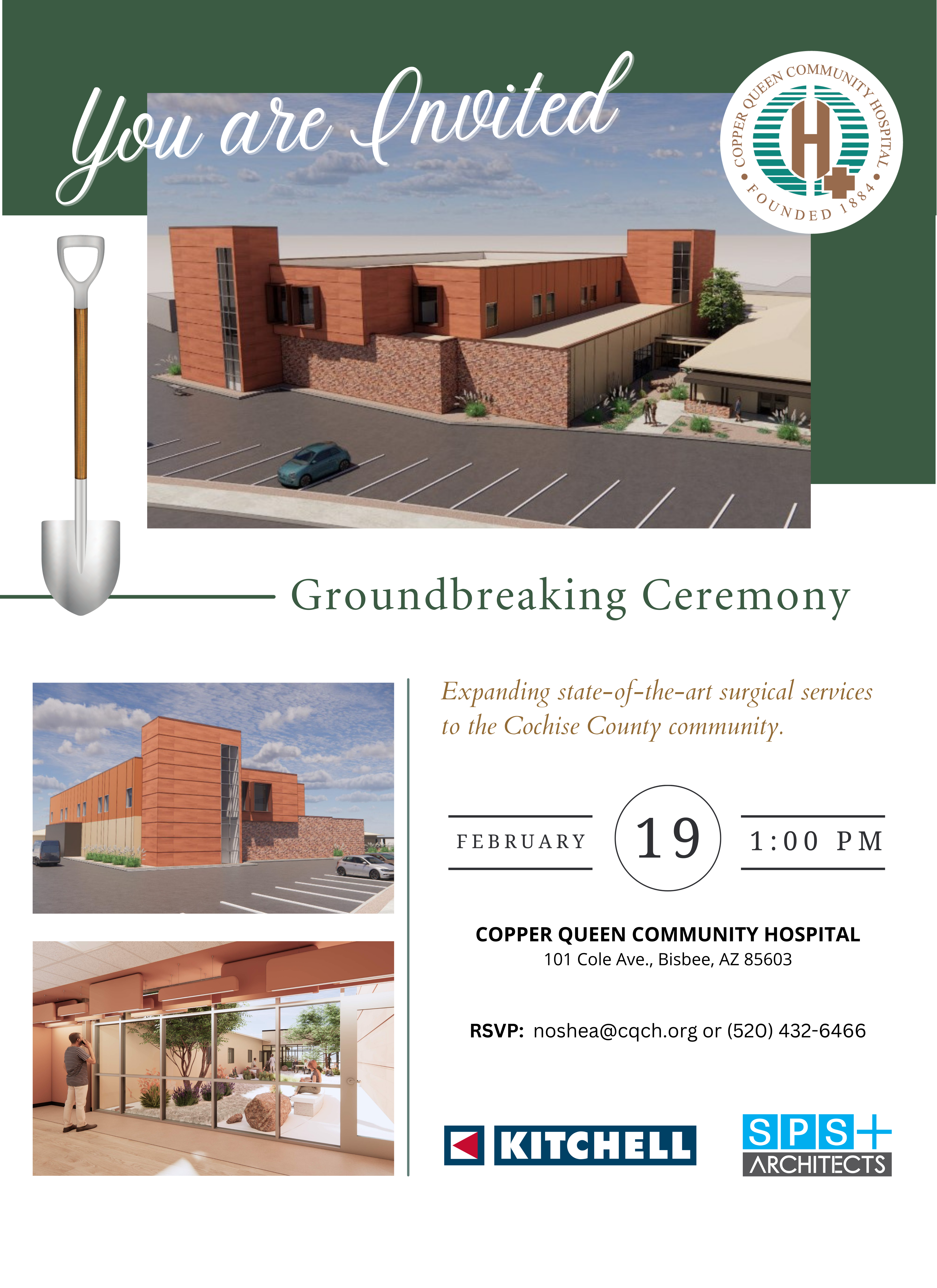 Groundbreaking ceremony for the new surgical wing at Copper Queen Community Hospital in Bisbee. Start time 1PM.