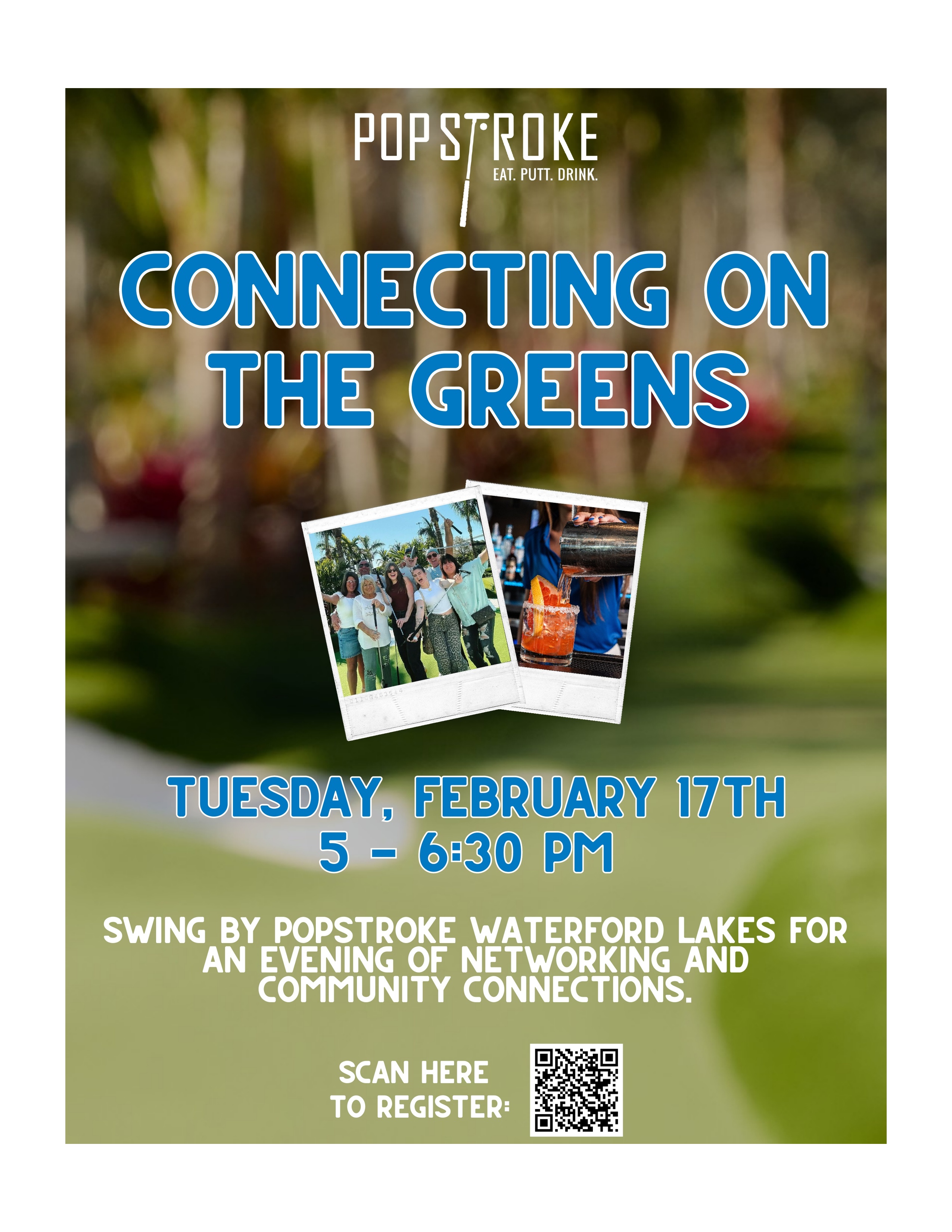 Connecting on the Greens — swing by PopStroke this February for an evening of networking and community connections.