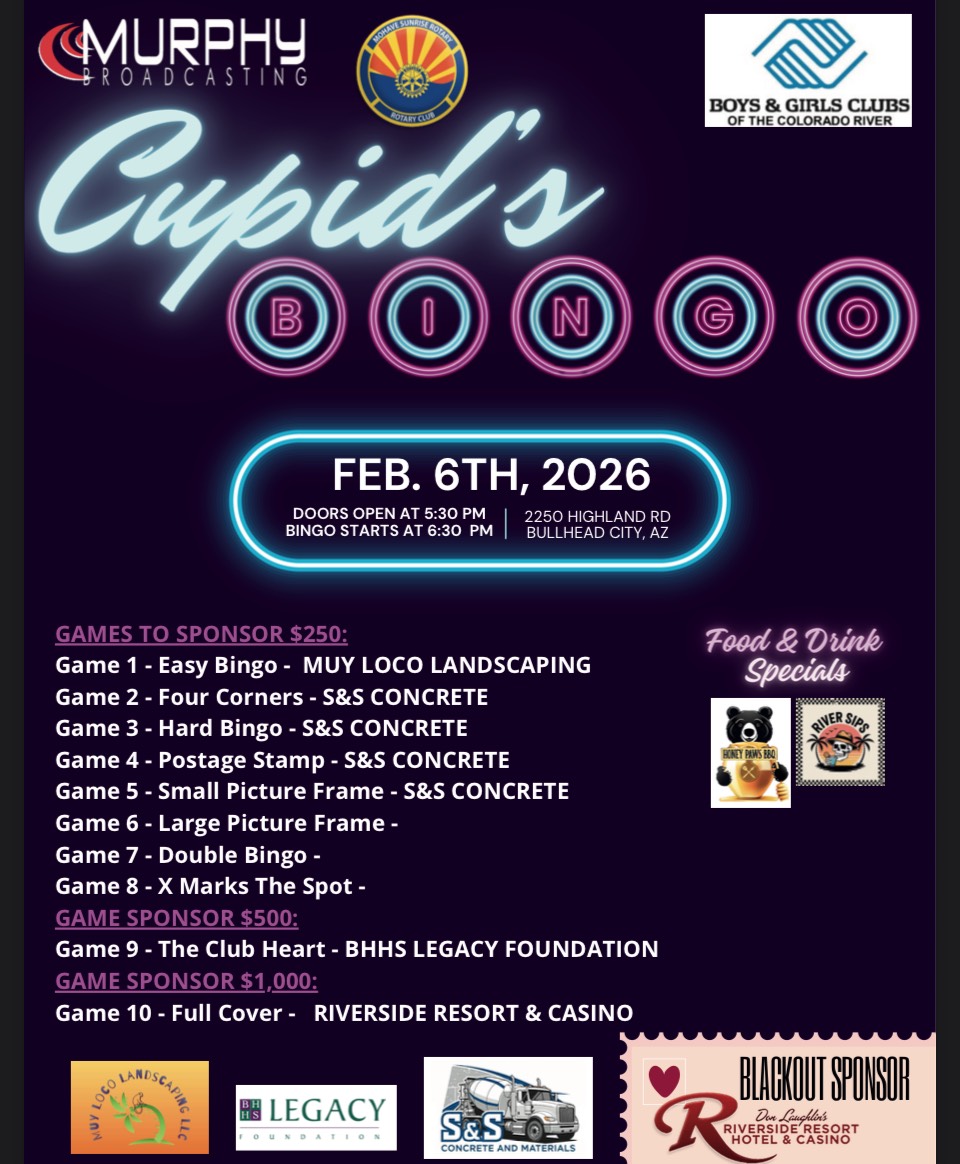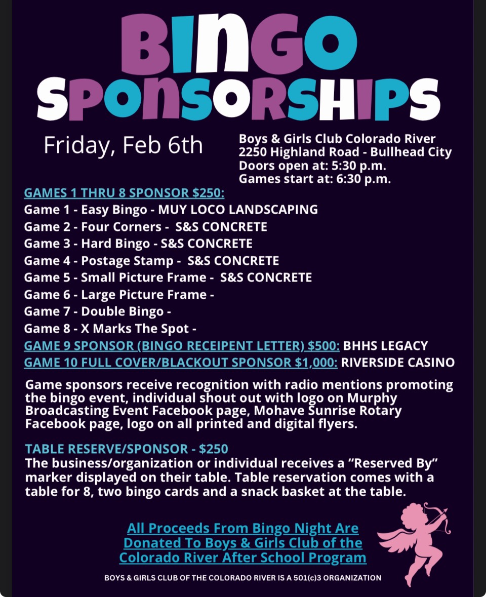 Your generosity helps make Cupid’s Bingo possible and directly supports the kids and programs at the Boys & Girls Clubs of the Colorado River. We are so grateful for your support! 💙♠️