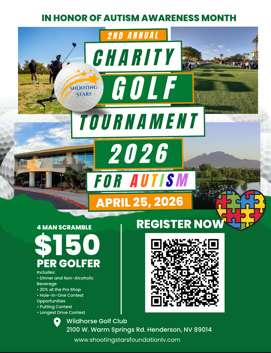 Proceeds from the event directly support Shooting Stars Foundation’ mission to provide resources, advocacy, and services that promote independence, inclusion, and improved quality of life for individuals on the autism spectrum. The tournament features 18 holes of golf, on-course contests, raffles, and opportunities for sponsorship and community engagement.