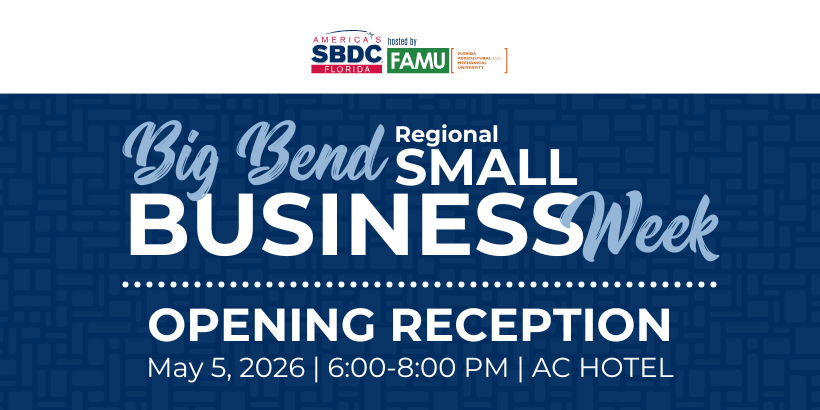 On May 5, 2026, at 6:00 PM, we invite you to join us for the 43rd Big Bend Regional Small Business Week Opening Reception, sponsored by Florida A&M University School of Business & Industry and Grova Creative.