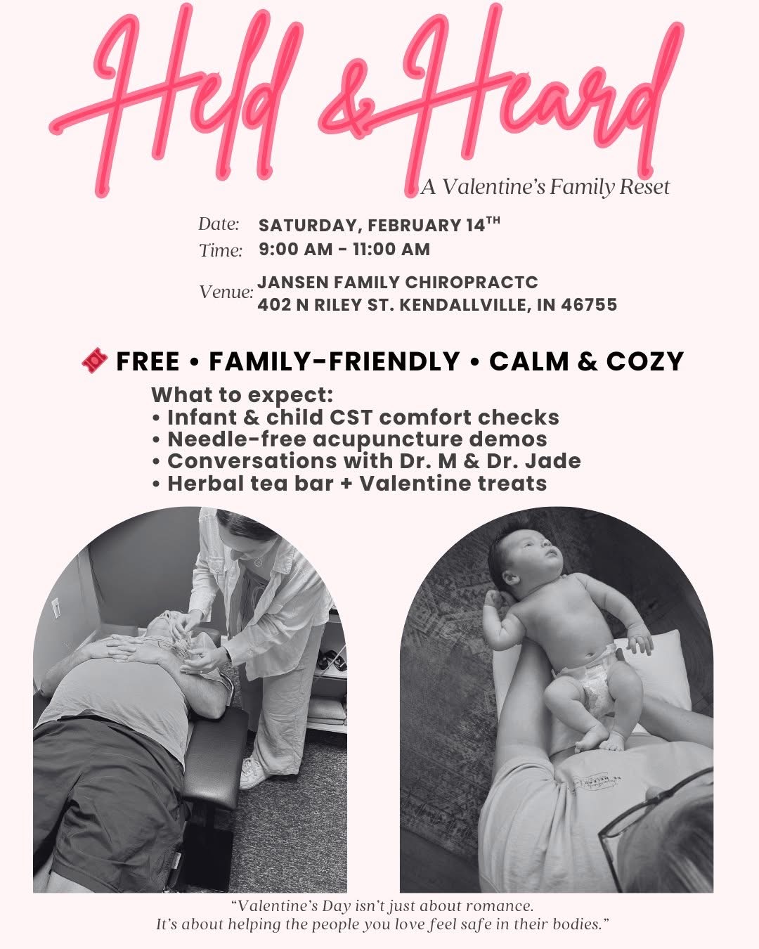 Valentine’s Day isn’t just about romance. It’s about helping the people you love feel safe in their bodies. Join Jansen Family Chiropractic on Valentine's Day for their FREE Held & Heard event!