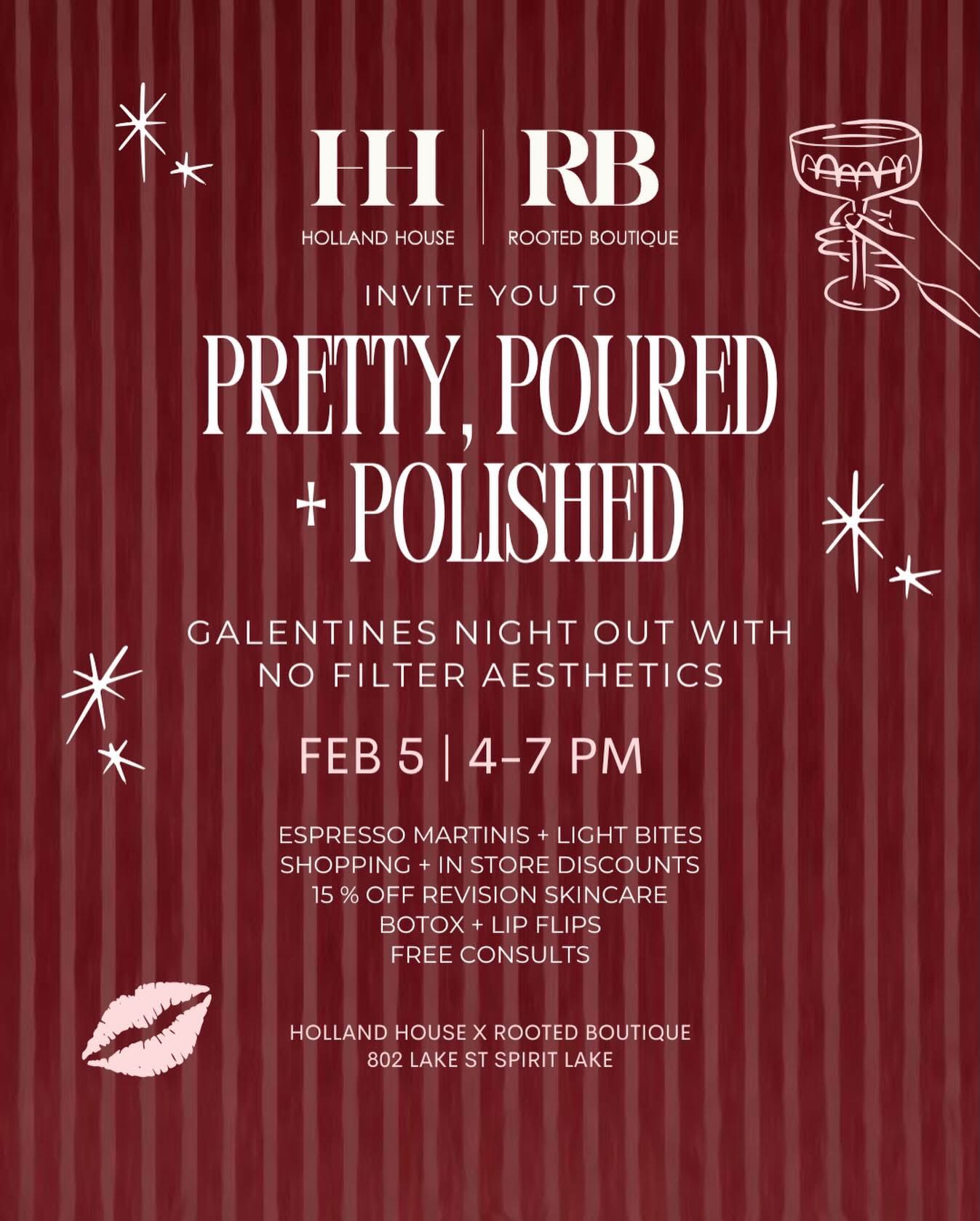 Join us for a Galentines Night out with Holland House x Rooted Boutique + No Filter Aesthetics.