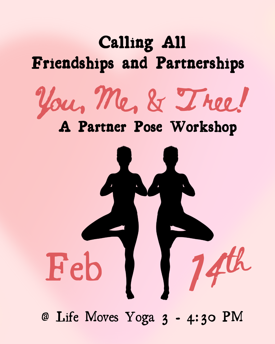 You, Me, & Tree: A Partner Pose Workshop happening this Saturday at 3:00 PM