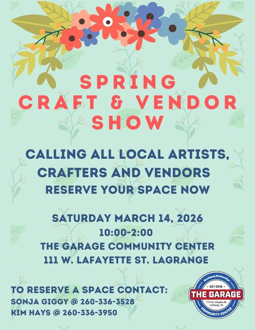 The annual Spring Craft & Vendor Show at The Garage Community Center is just around the corner, taking place on Saturday, March 14th, from 10:00 AM to 2:00 PM. This is your opportunity to showcase your creativity, connect with the community, and grow your business alongside fellow local artists, crafters, and vendors.