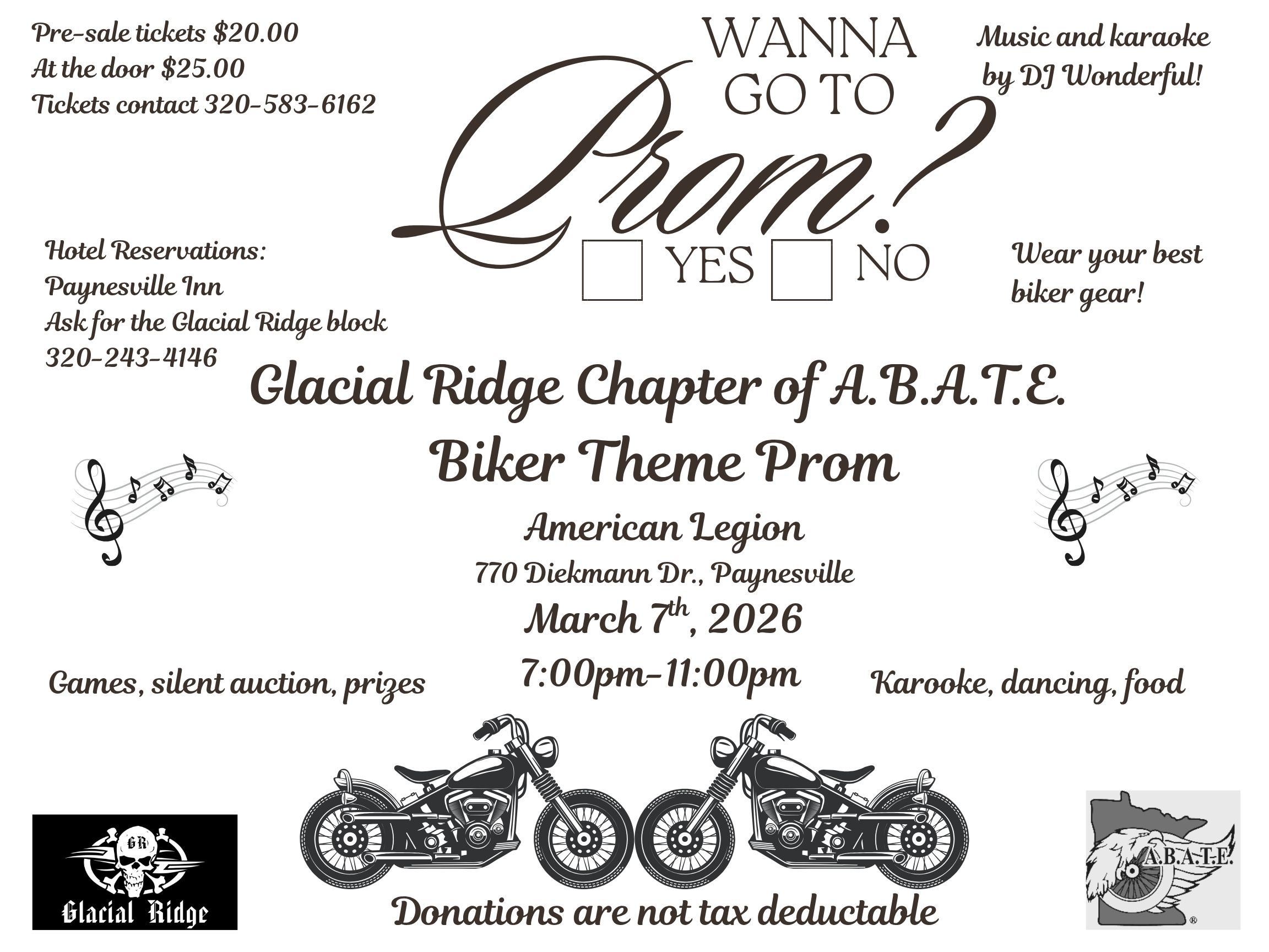 A.B.A.T.E. of Minnesota Glacial Ridge Chapter is having prom at the Paynesville Legion!