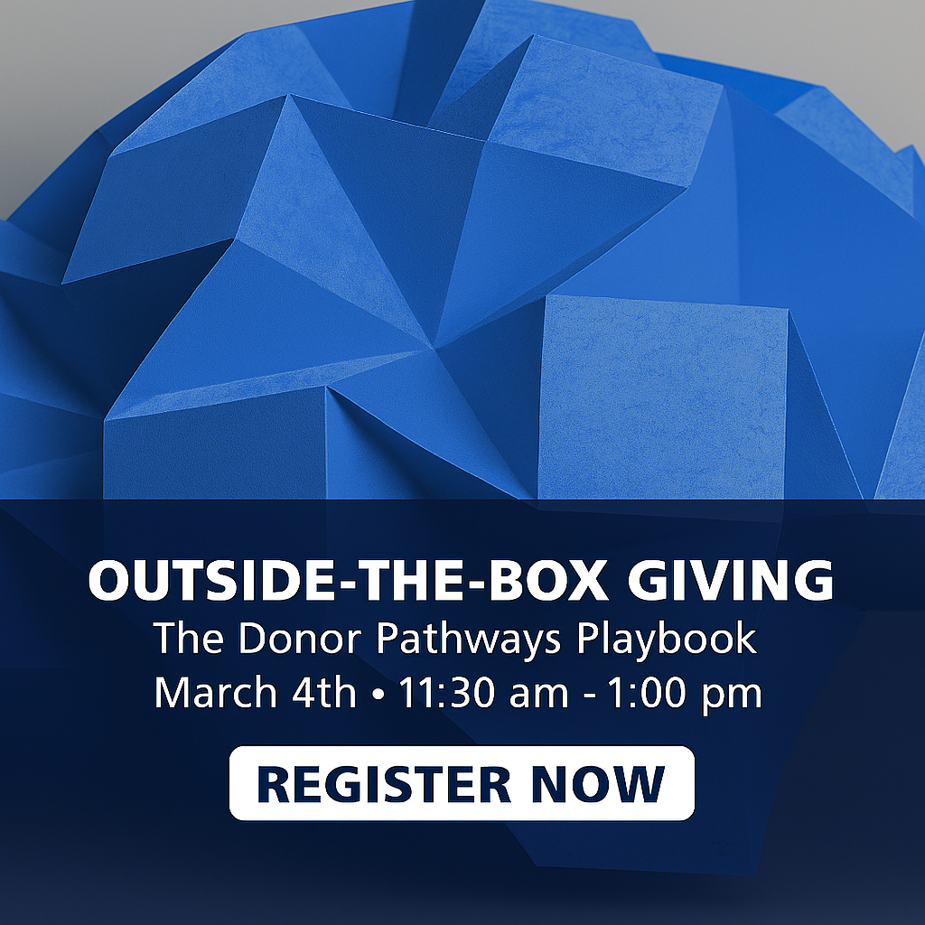 Join us for Outside-the-Box Giving: The Donor Pathways Playbook and learn how to turn assets, legacy plans, and income gifts into lasting support for your mission.