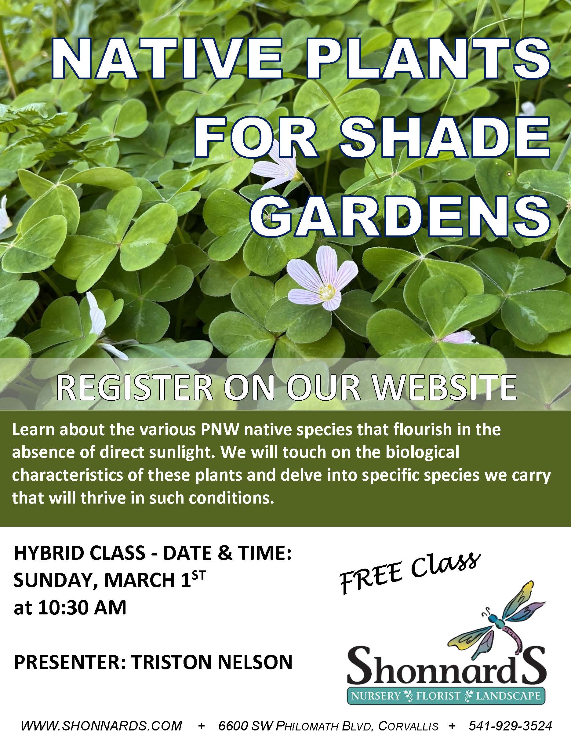 Spend your morning learning about the various PNW native species that flourish in the absence of direct sunlight. We will touch on the biological characteristics of these plants and delve into specific species we carry that will thrive in such conditions.