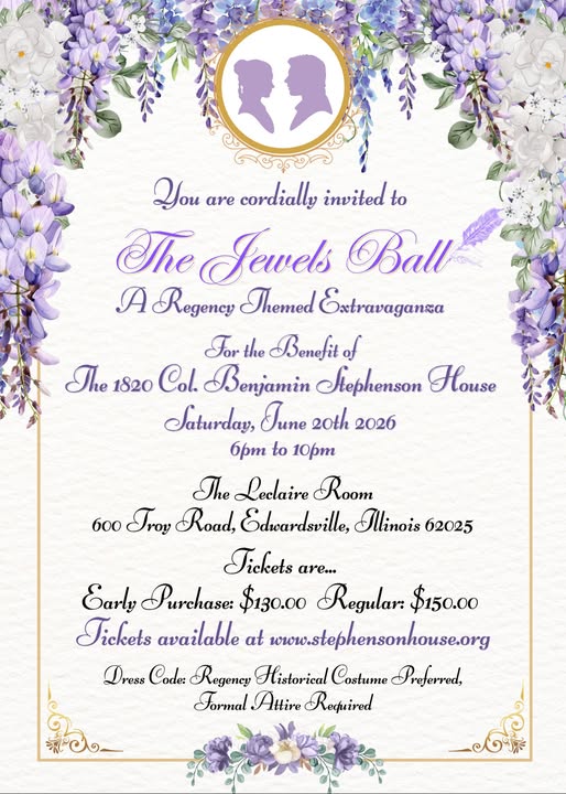 Step into a Bridgerton-inspired evening and experience a bit of Regency splendor! The 1820 Col. Benjamin Stephenson House, in partnership with the St. Louis Historical Sewing Society, invites you to "The Jewels Ball", a glittering celebration of elegance and community support.