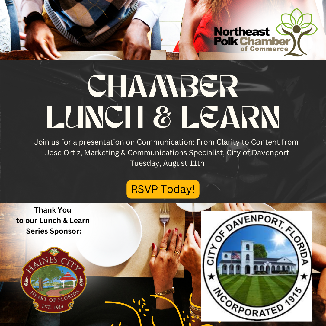 RSVP REQUIRED to the Chamber by Thursday, August 6th or until filled: info@northeastpolkchamber.com