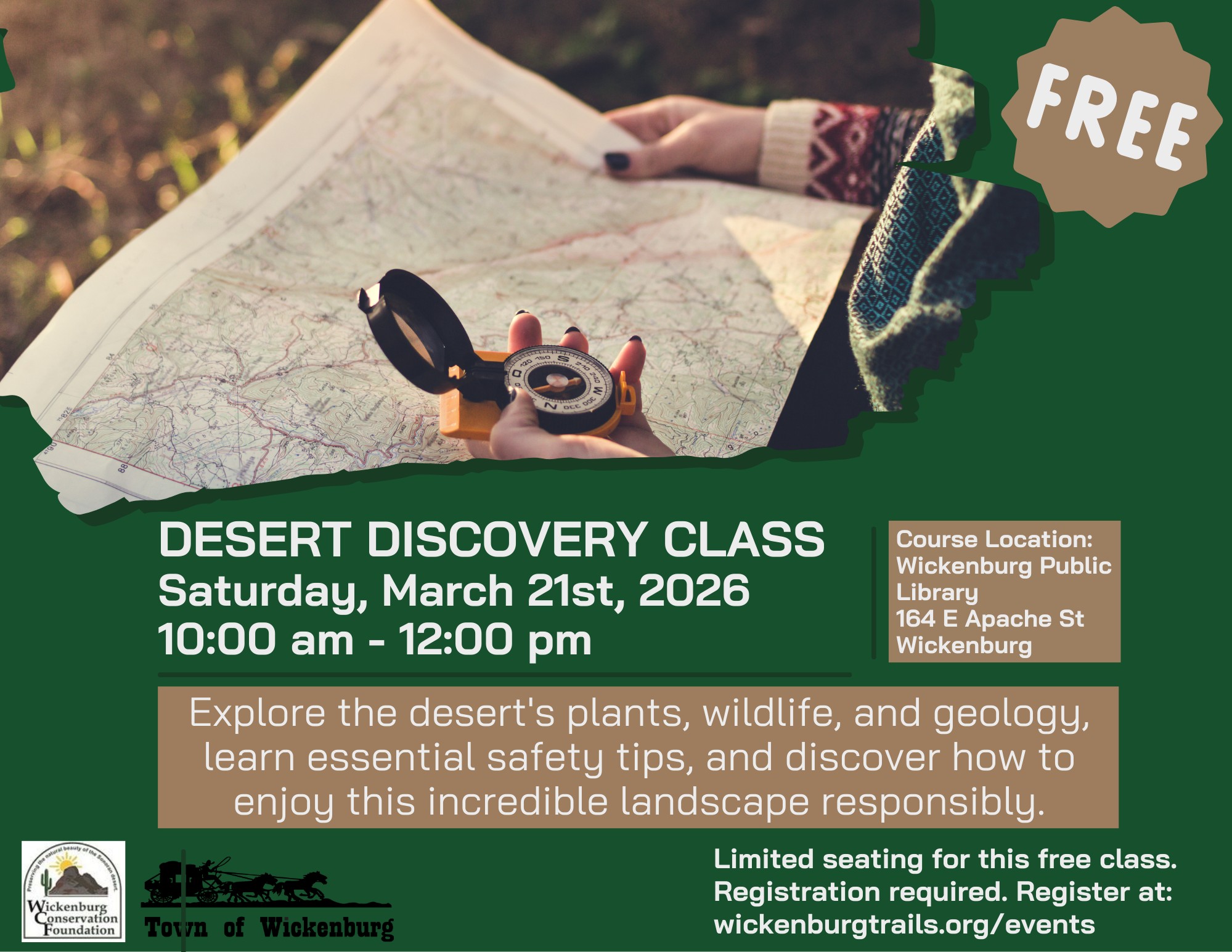 Free. Lean about our fascinating desert, it's plants, wildlife and geology, and how to enjoy it safely without leaving a trace.